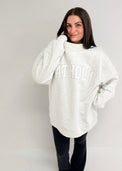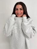 It’s designed with an oversized fit - size down for a closer look. The mockneck cut gives it a slightly elevated vibe, and every piece is individually embroidered.